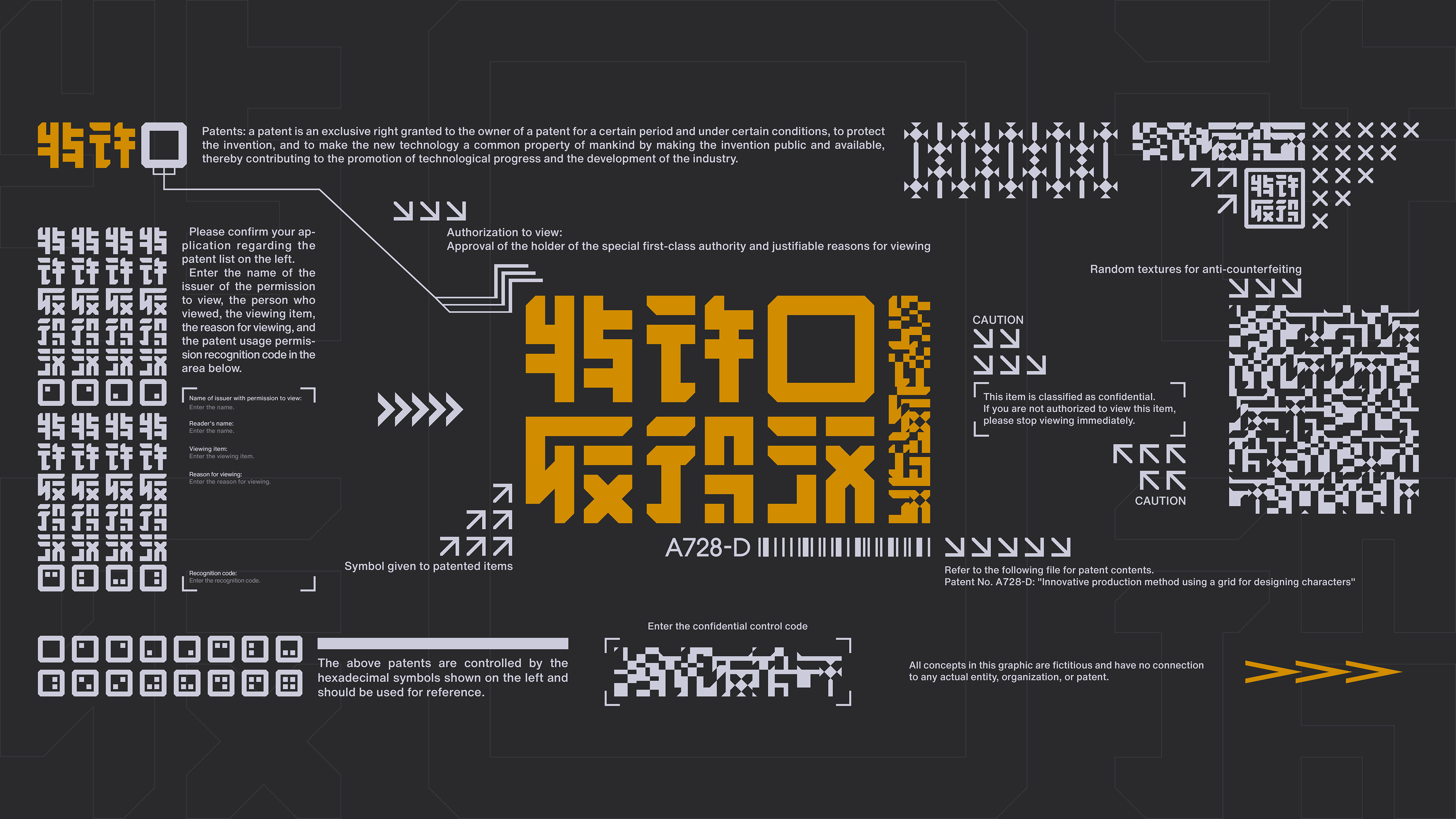 This is a privately produced graphic design. It is a graphic design on the theme of patents. By using a lot of text information, it expresses an uptight feeling. In addition, random geometric patterns using the title logo are placed in key places. The third and fourth pictures were created for my iPhone wallpaper.